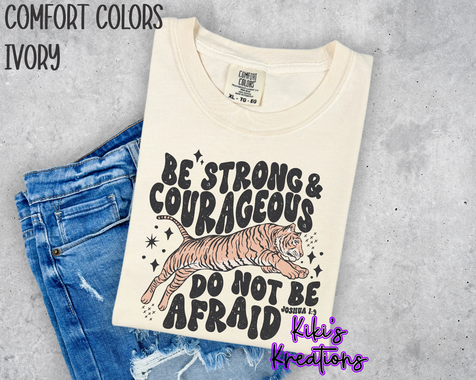 This Comfort Colors t-shirt features the empowering message, "Be strong and courageous." Inspired by Joshua 1:9, this tee is a reminder to stay strong and brave in the face of challenges. Made with high-quality materials for lasting comfort.