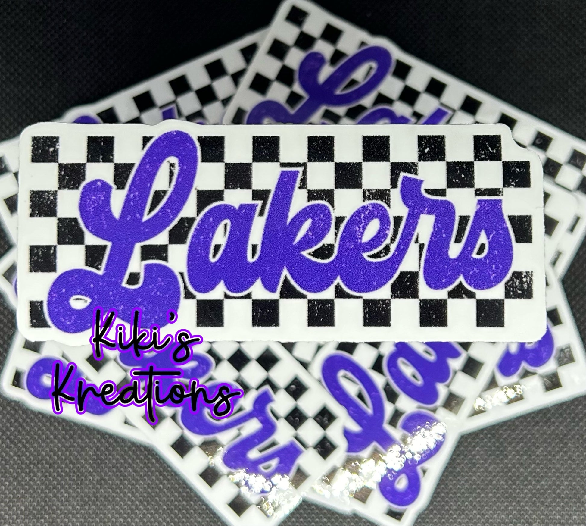 Add some retro flair to your school spirit with our Checkered Lakers Sticker! Show off your love for the Lakers with this unique and stylish sticker featuring a classic checkered design. Perfect for any fan or student looking to add some team pride to their belongings. Measures 4”