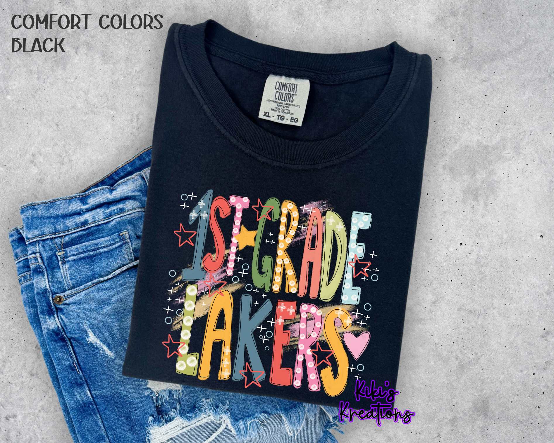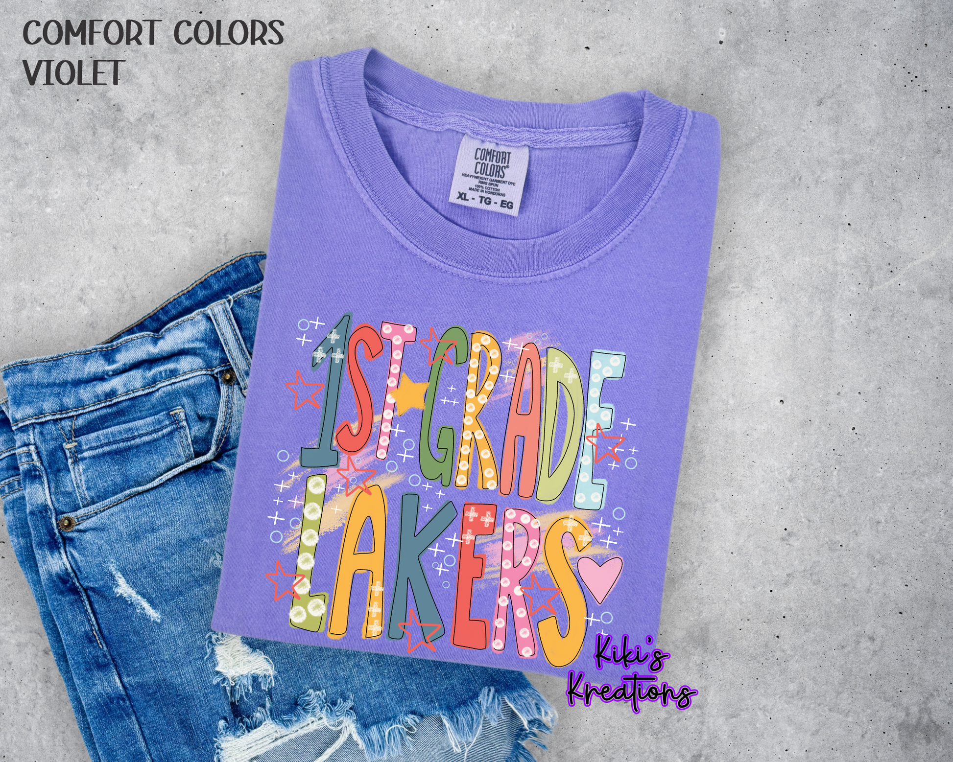 Upgrade your Laker's wardrobe with our FUNKY 1ST GRADE LAKERS tee. Made with COMFORT COLORS fabric and printed in a unique FUNKY font, this shirt will provide style and comfort for all-day wear.