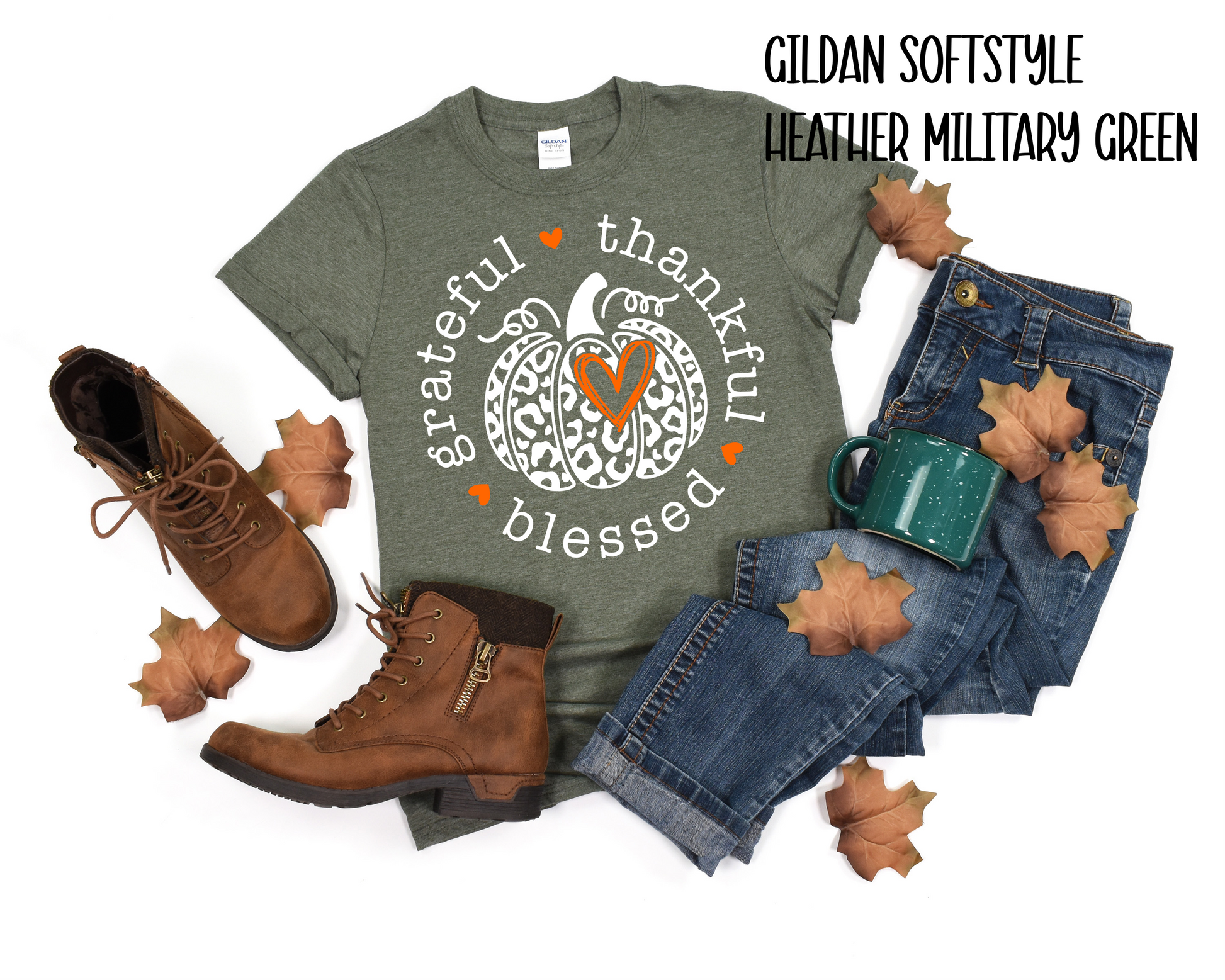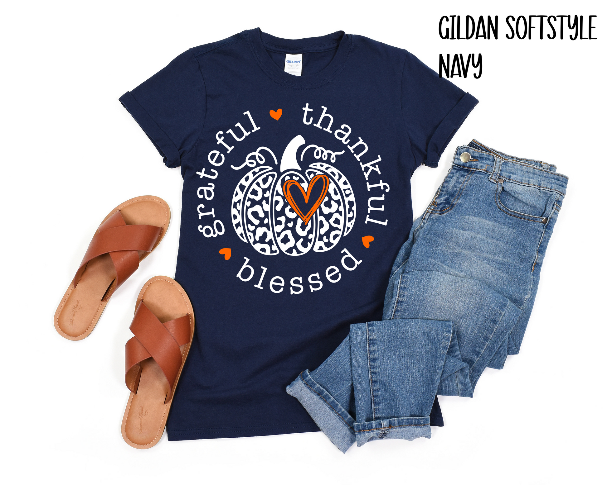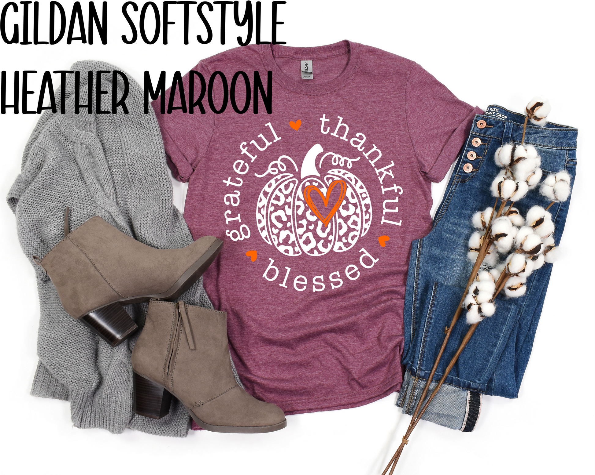 Express your gratitude and positive outlook on life with this comfy GRATEFUL THANKFUL BLESSED tee! Made with GILDAN SOFTSTYLE, this stylish tee provides a soft and lightweight feel for all-day comfort.