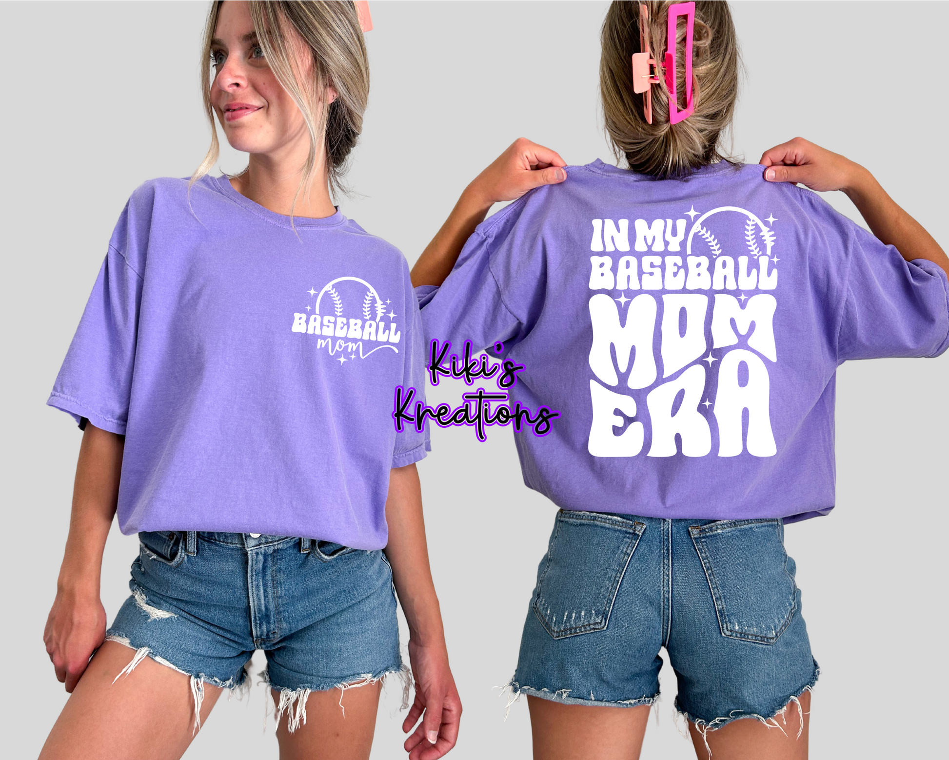 Step up your mom game with the IN MY BASEBALL MOM ERA Comfort Colors Tee! Made with soft and durable fabric, you'll stay comfortable while cheering on your little slugger. It's the perfect addition to your game day wardrobe. Show off your baseball mom pride in style.