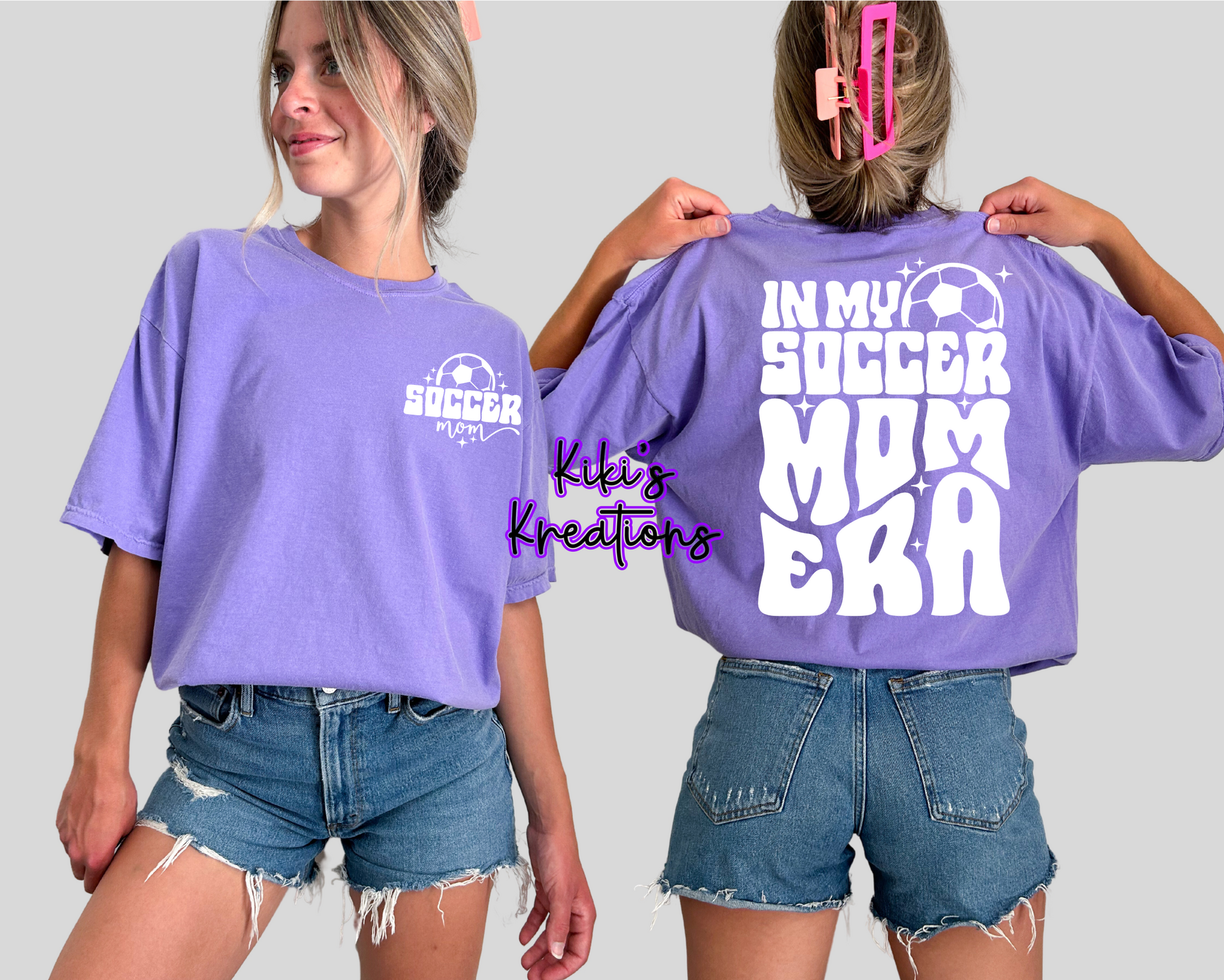 This IN MY SOCCER MOM ERA COMFORT COLORS TEE is the perfect addition to your wardrobe! Made with soft and durable material, this tee offers both comfort and style. With its trendy design, it's great for everyday wear or for cheering on your little ones at their soccer games. Upgrade your mom game with this must-have tee!