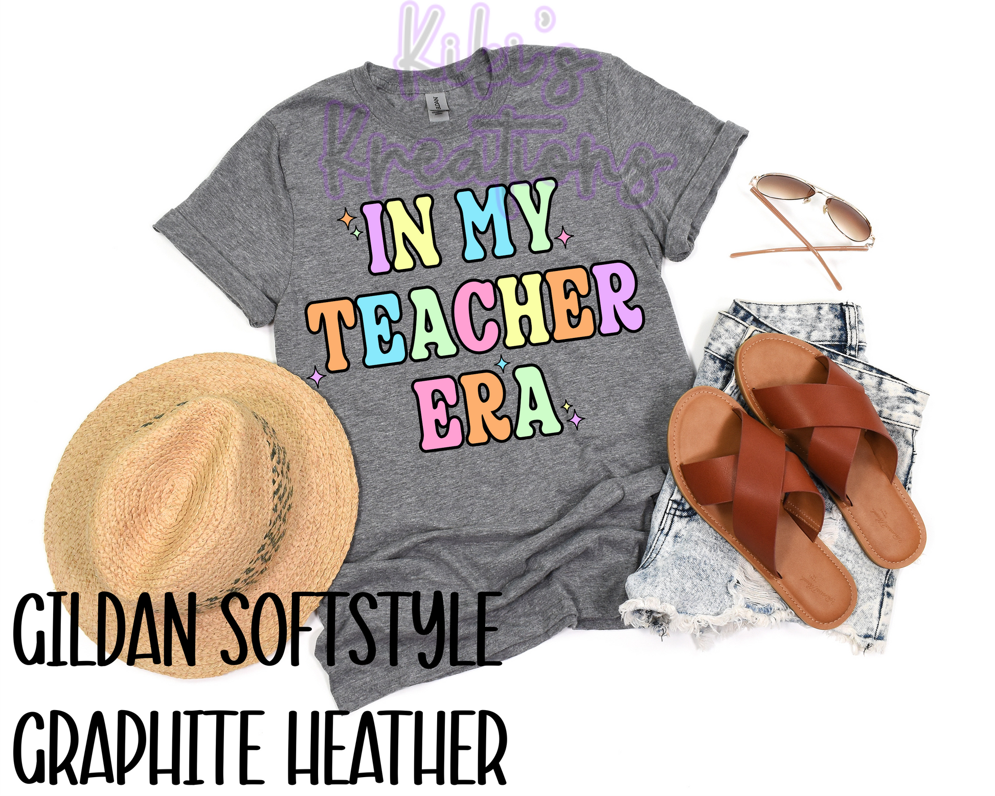 The IN MY TEACHER ERA GILDAN SOFTSTYLE t-shirt is the perfect way to show your school pride. Crafted with pre-shrunk ringspun cotton, this t-shirt is designed to provide superior fit, comfort and durability. Enjoy a lightweight, breathable and soft feel. Show off your style with this modern take on a classic school shirt.
