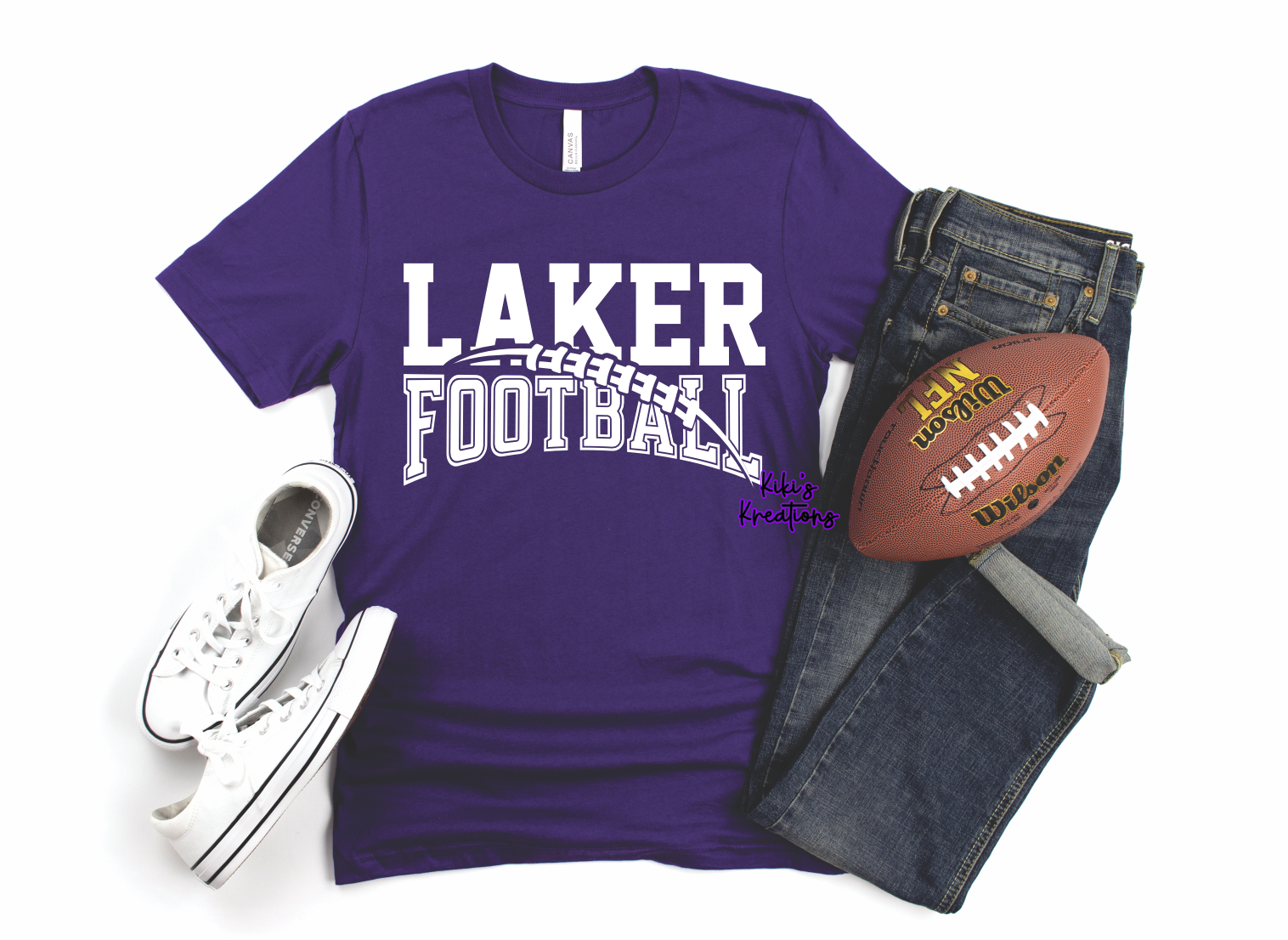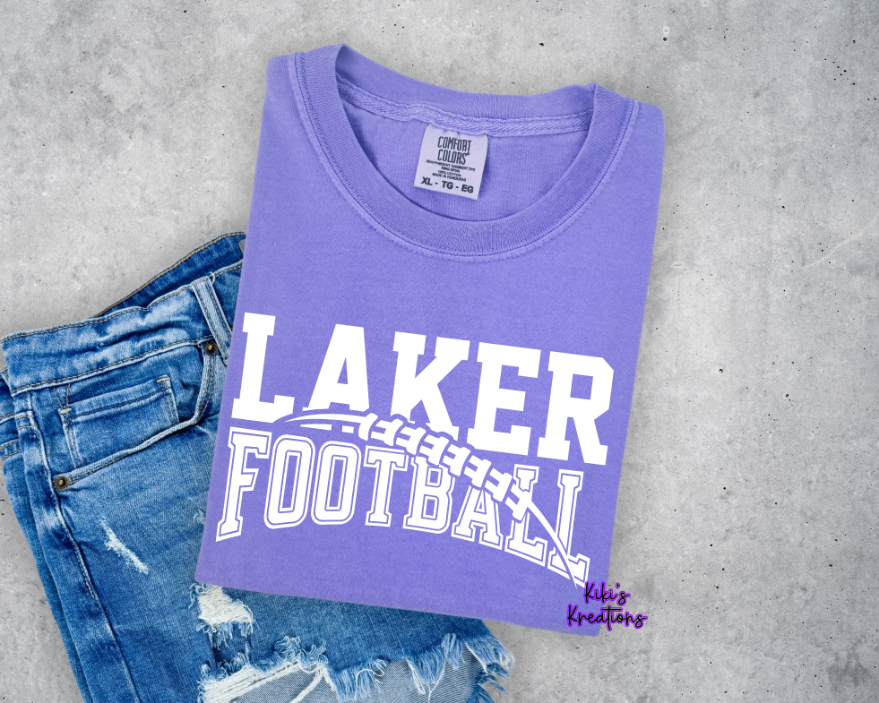 Represent your school pride with the LAKER FOOTBALL! Featuring a bold purple tee, this must-have garment is perfect for showing off your team spirit. Join the dedicated fan base and sport this comfortable tee at every game.