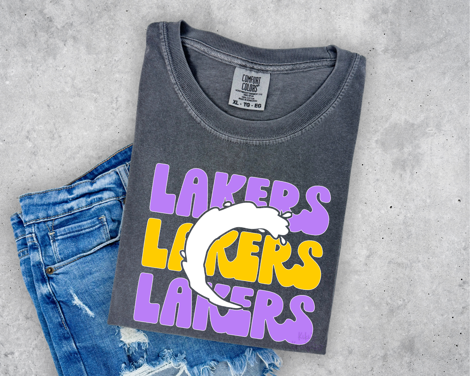 Represent your school spirit with the Lakers Retro Stacked Wave Comfort Colors tee. Made from high-quality material, this tee provides both comfort and style. Show off your team pride while feeling comfortable and fashionable. Perfect for any die-hard Lakers fan.