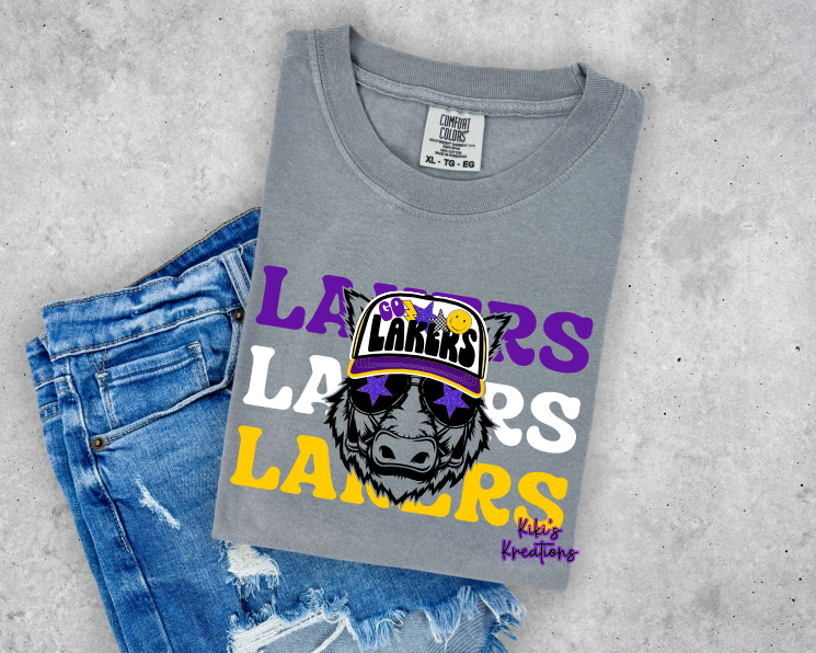 Introducing the Lakers Stacked Preppy Hog, featuring a classic and comfortable comfort colors tee. This shirt proudly displays the Lakers' stacked logo, perfect for any fan. Get yours today and show your support for the team on and off the field.