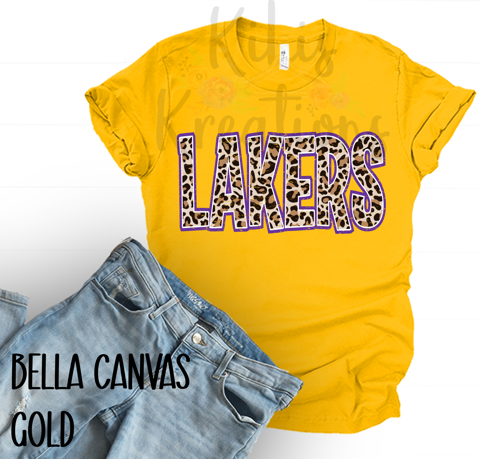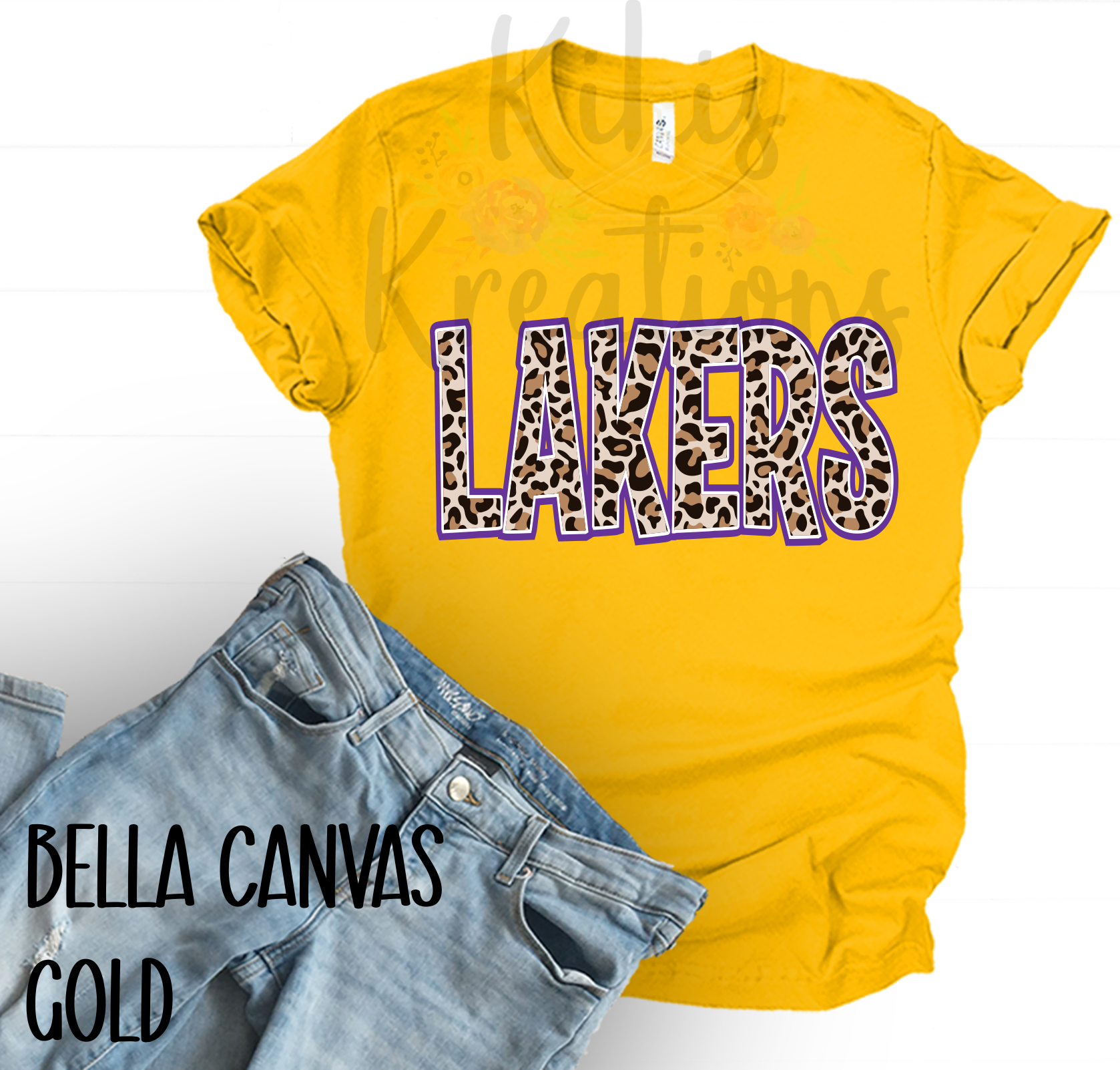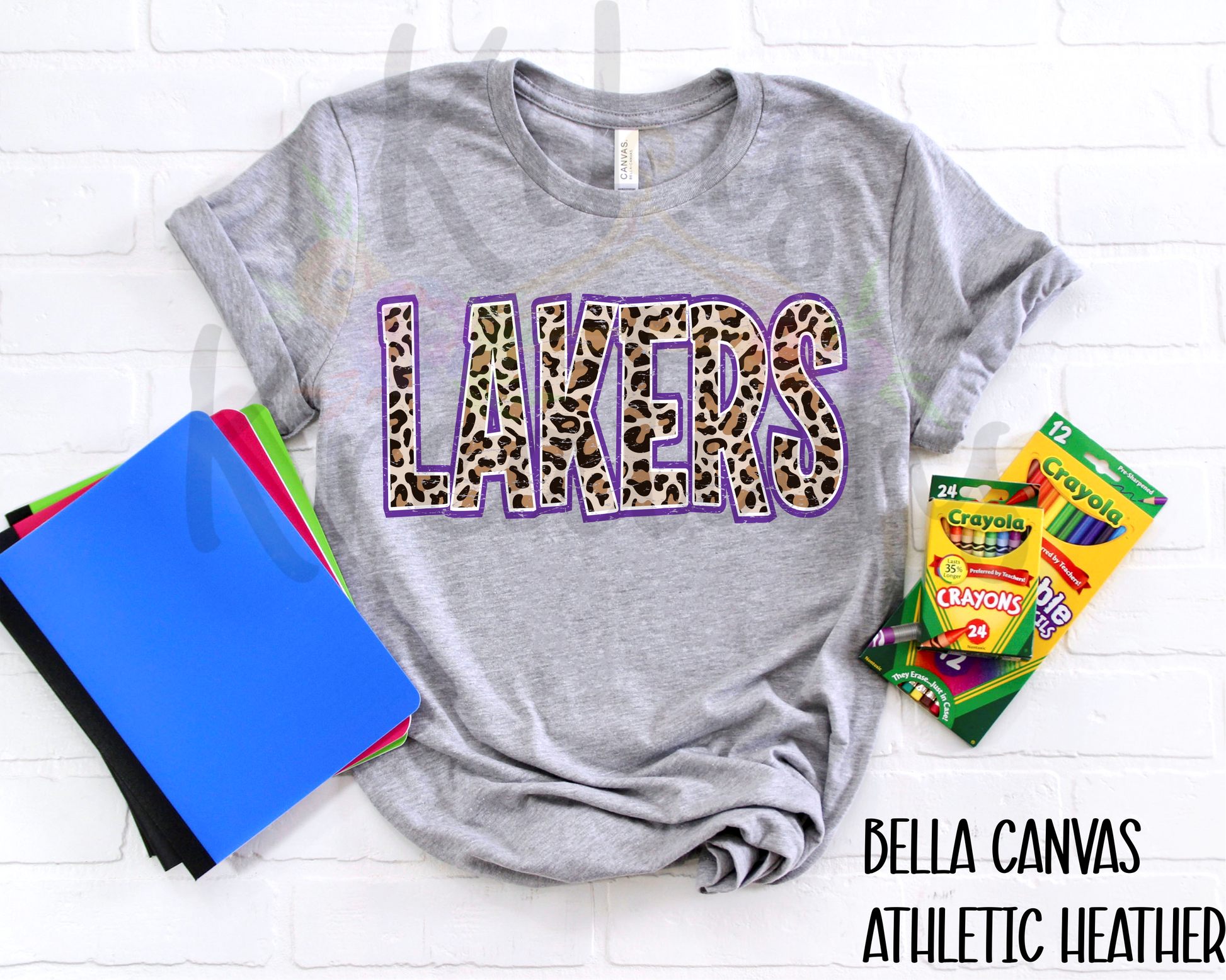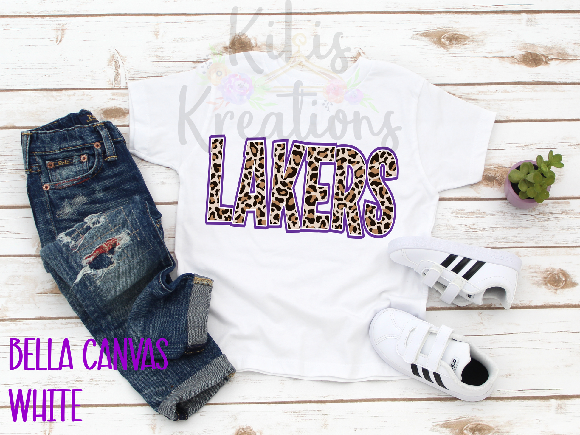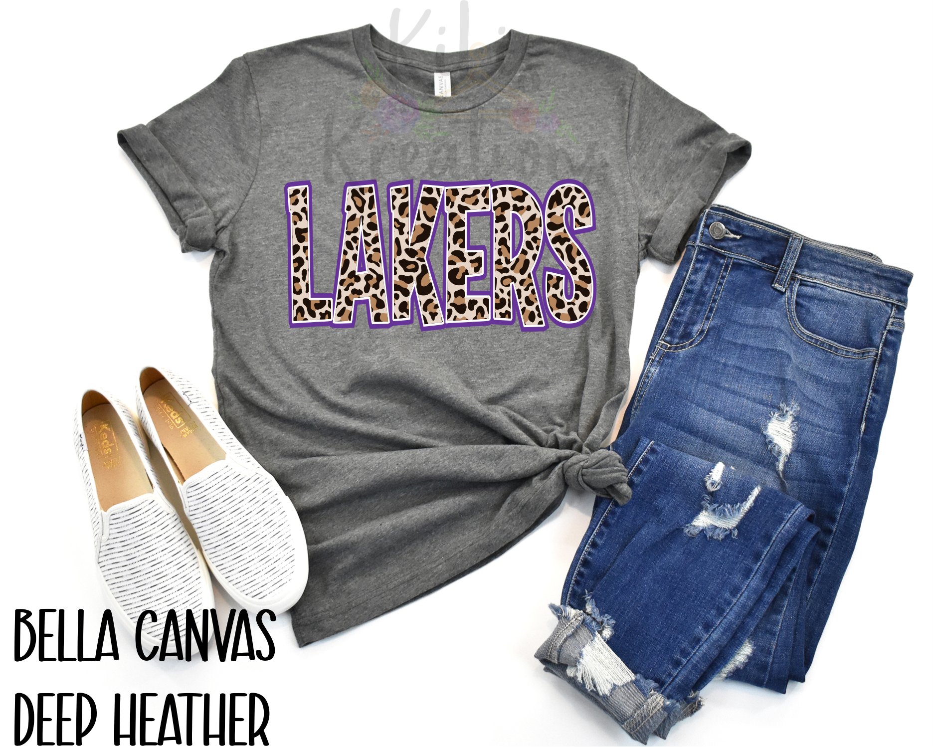 Show off your school pride with the LEOPARD LAKERS. Every option is made with either a distressed look or a solid look, and features a leopard print with a striking grape purple outline. Support your school in style with these stylish tees.