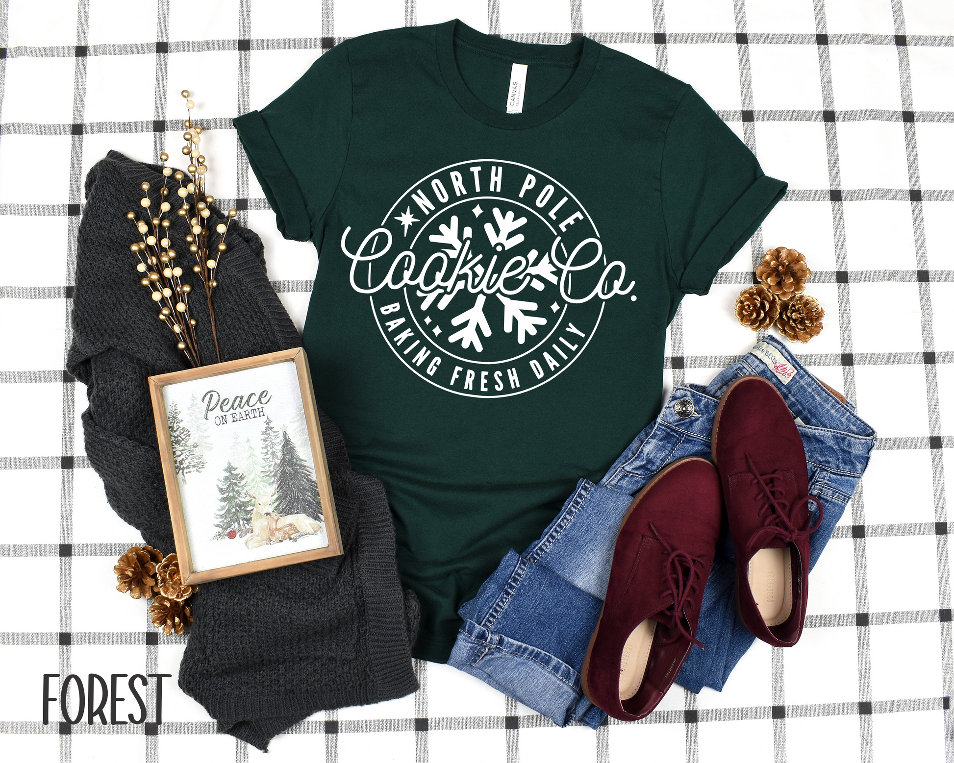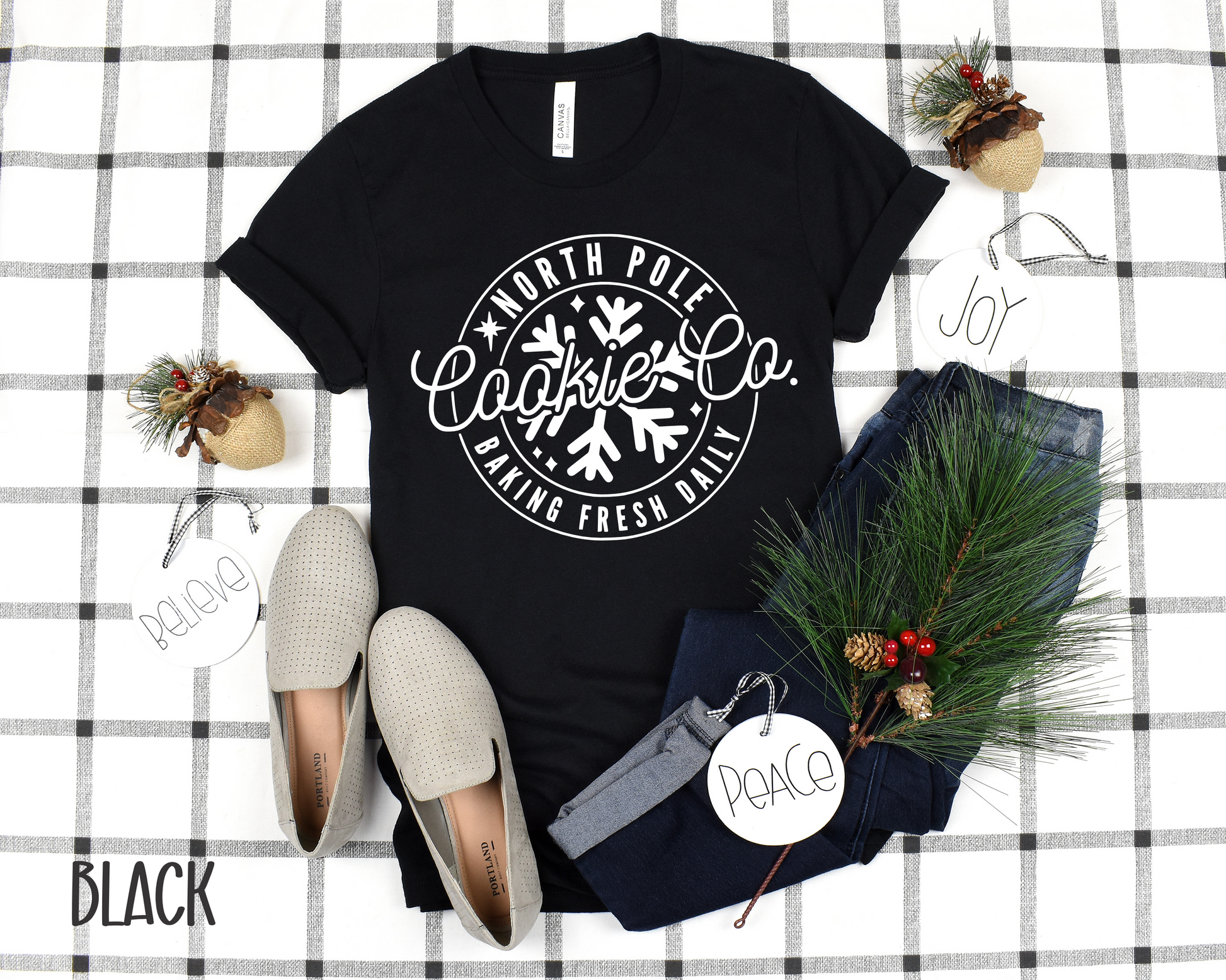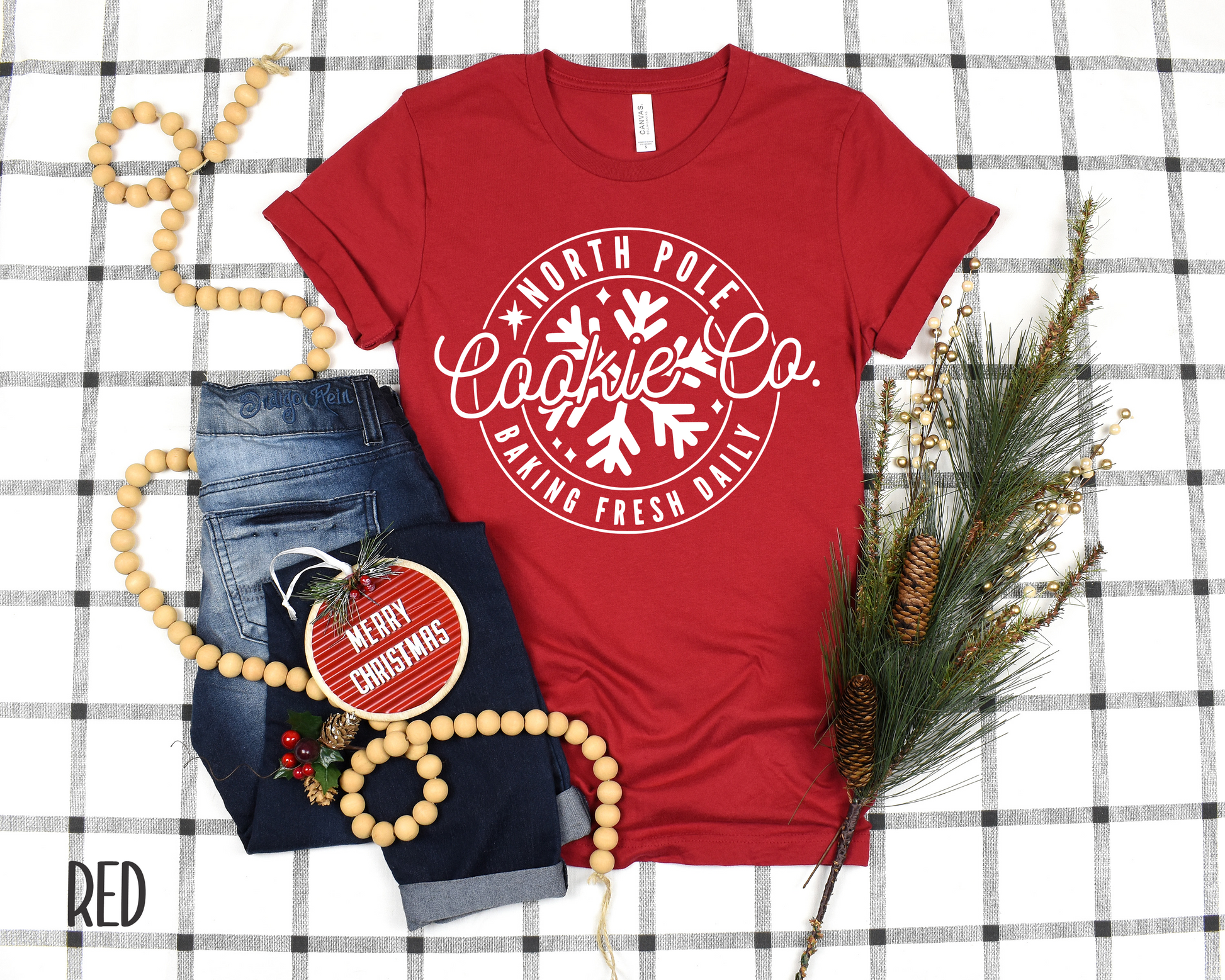 Bring the holiday spirit into your wardrobe with the NORTH POLE COOKIE CO. TEE. Crafted with 100% cotton fabric for comfort and breathability, the festive design features an iconic Christmas motif for a truly festive look. Perfect for celebrating the season in style!
