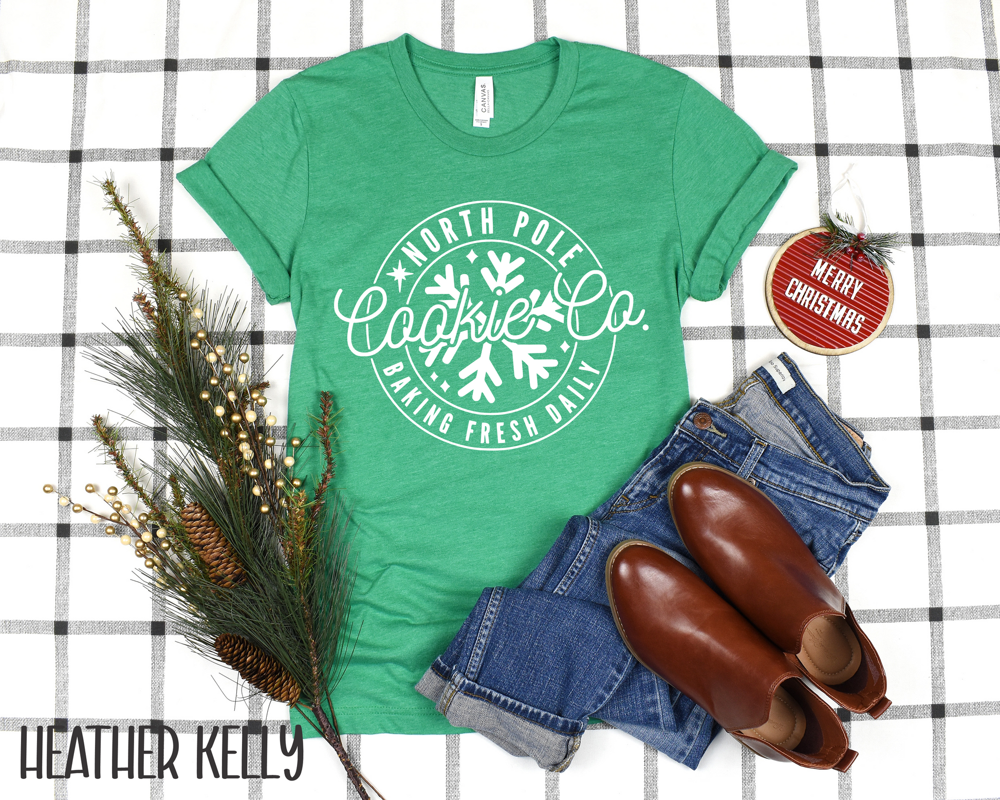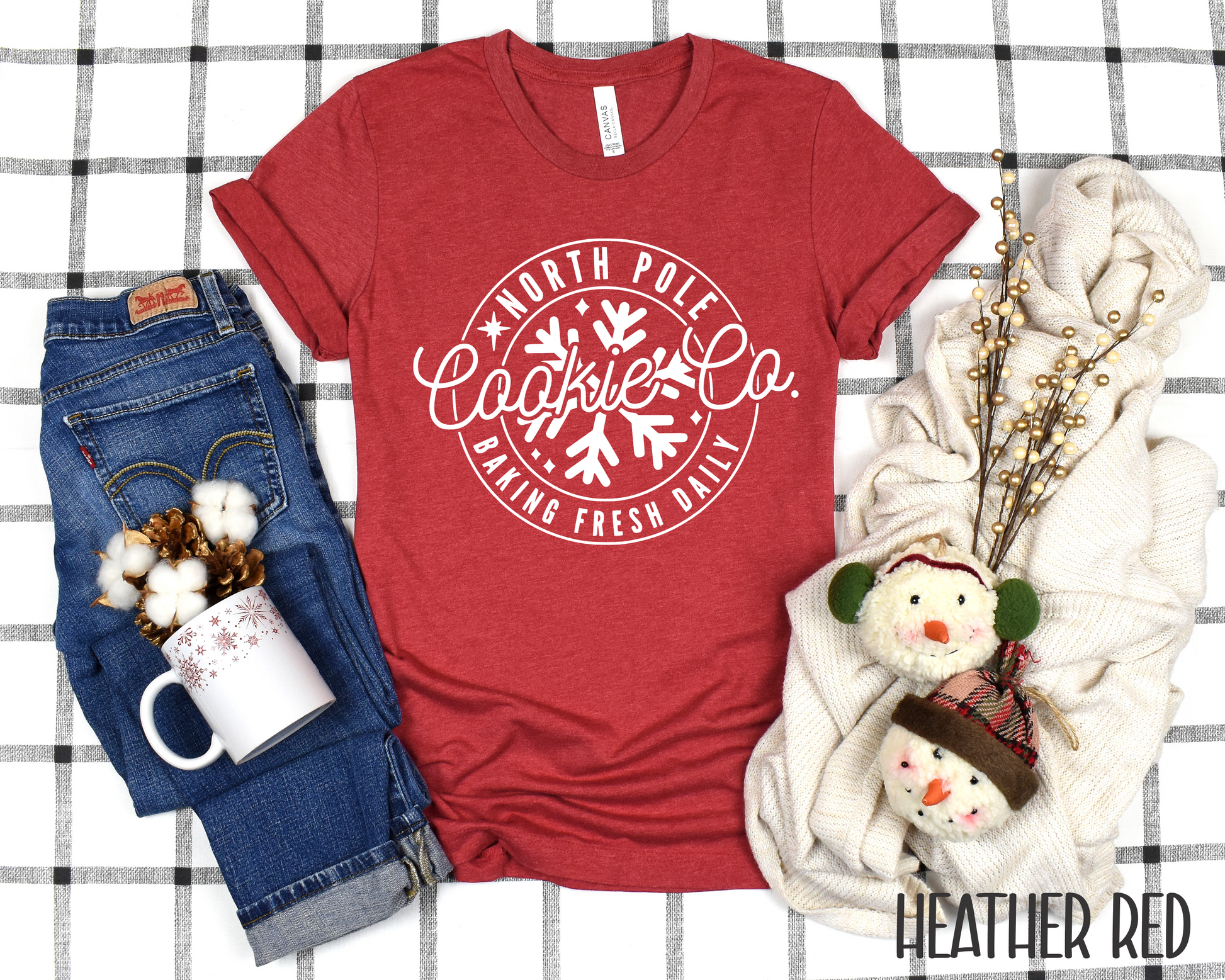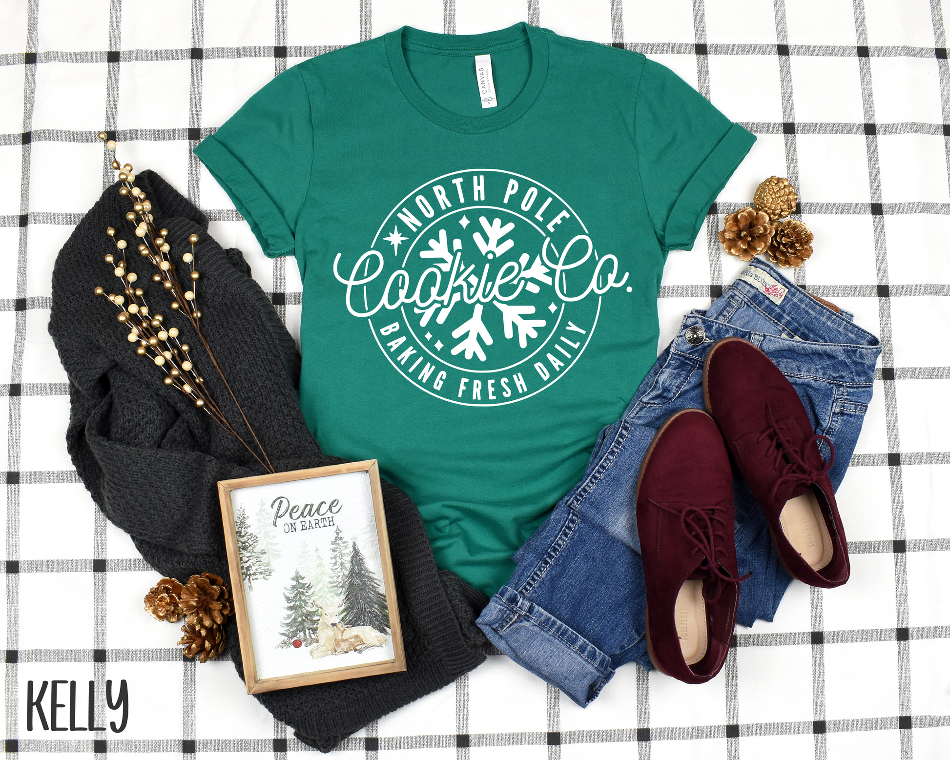Bring the holiday spirit into your wardrobe with the NORTH POLE COOKIE CO. TEE. Crafted with 100% cotton fabric for comfort and breathability, the festive design features an iconic Christmas motif for a truly festive look. Perfect for celebrating the season in style!