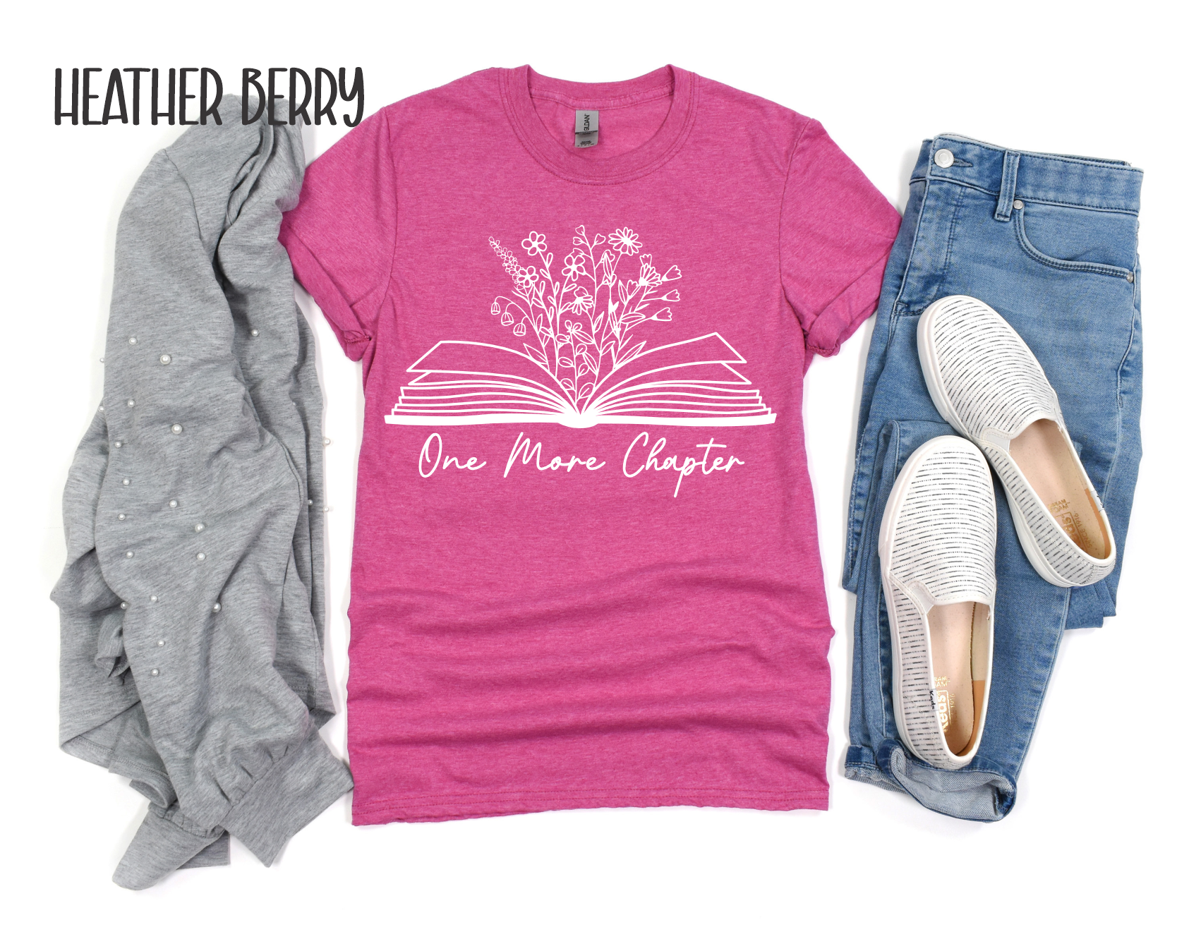 Immerse yourself in the world of reading with ONE MORE CHAPTER, the perfect gift for book lovers! This Gildan Softstyle Tee is designed to provide maximum comfort while you dive into your next favorite book. The perfect way to express your love for reading and indulge in one more chapter.