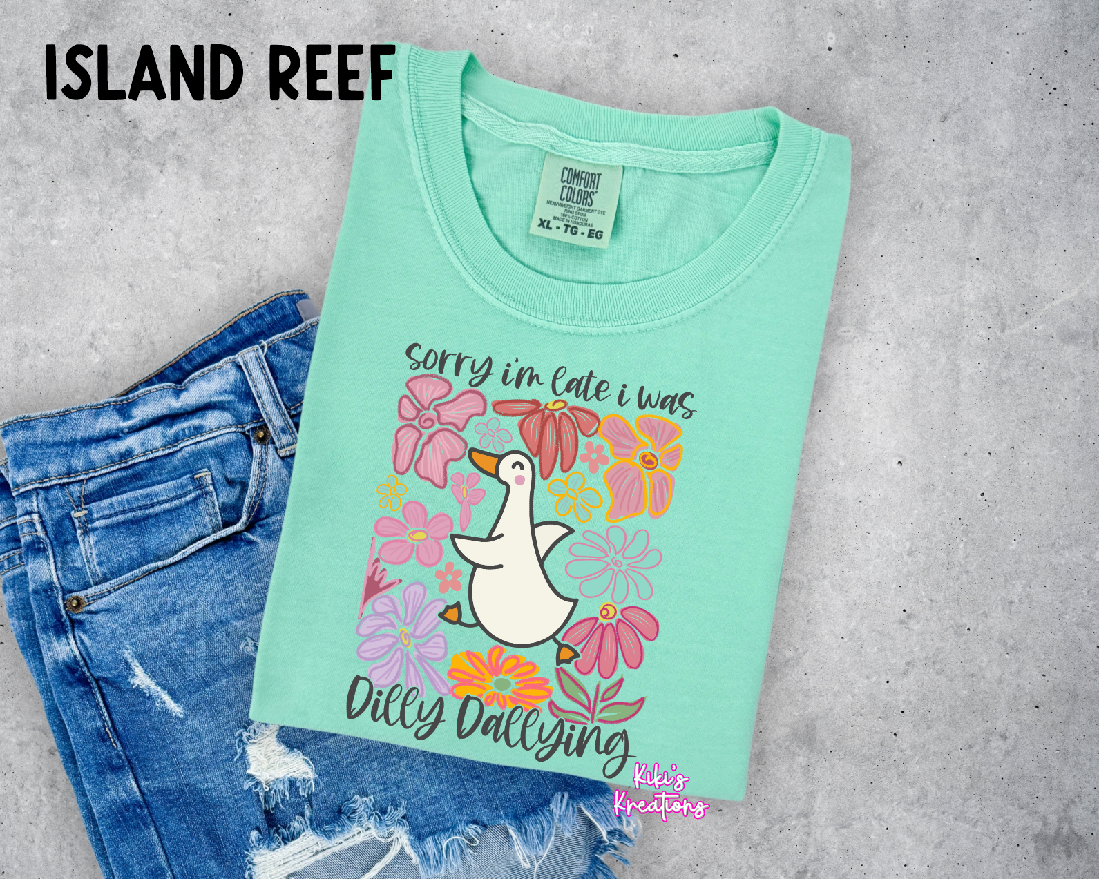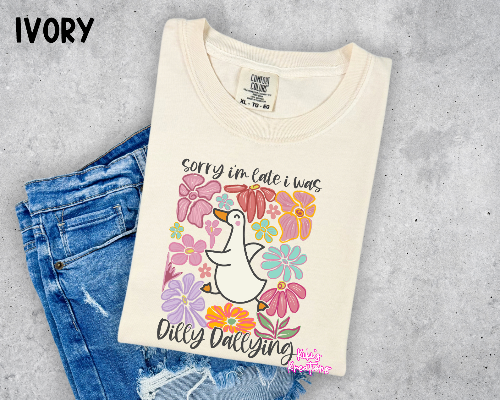 Be constantly fashionably late with the SORRY IM LATE I WAS DILLY DALLYING graphic tee. Made with comfort colors for all-day comfort, this tee features a hilarious goose design that will surely make you the center of attention. Update your wardrobe with this must-have funny tee!