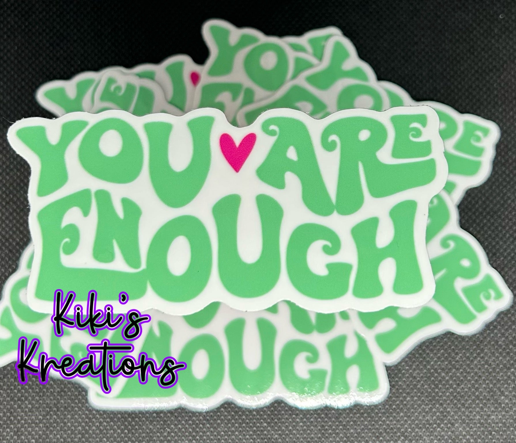Enhance your self-love with our "You Are Enough" retro sticker! Featuring a mint and pink design, this 3" sticker serves as a daily reminder that you are worthy just the way you are. Perfect for decorating your laptop, water bottle, or journal.